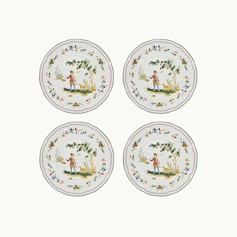 Crafted from fine bone china by Duggan Society, these plates feature a French toile motif that brings timeless charm to both everyday meals and elegant gatherings.